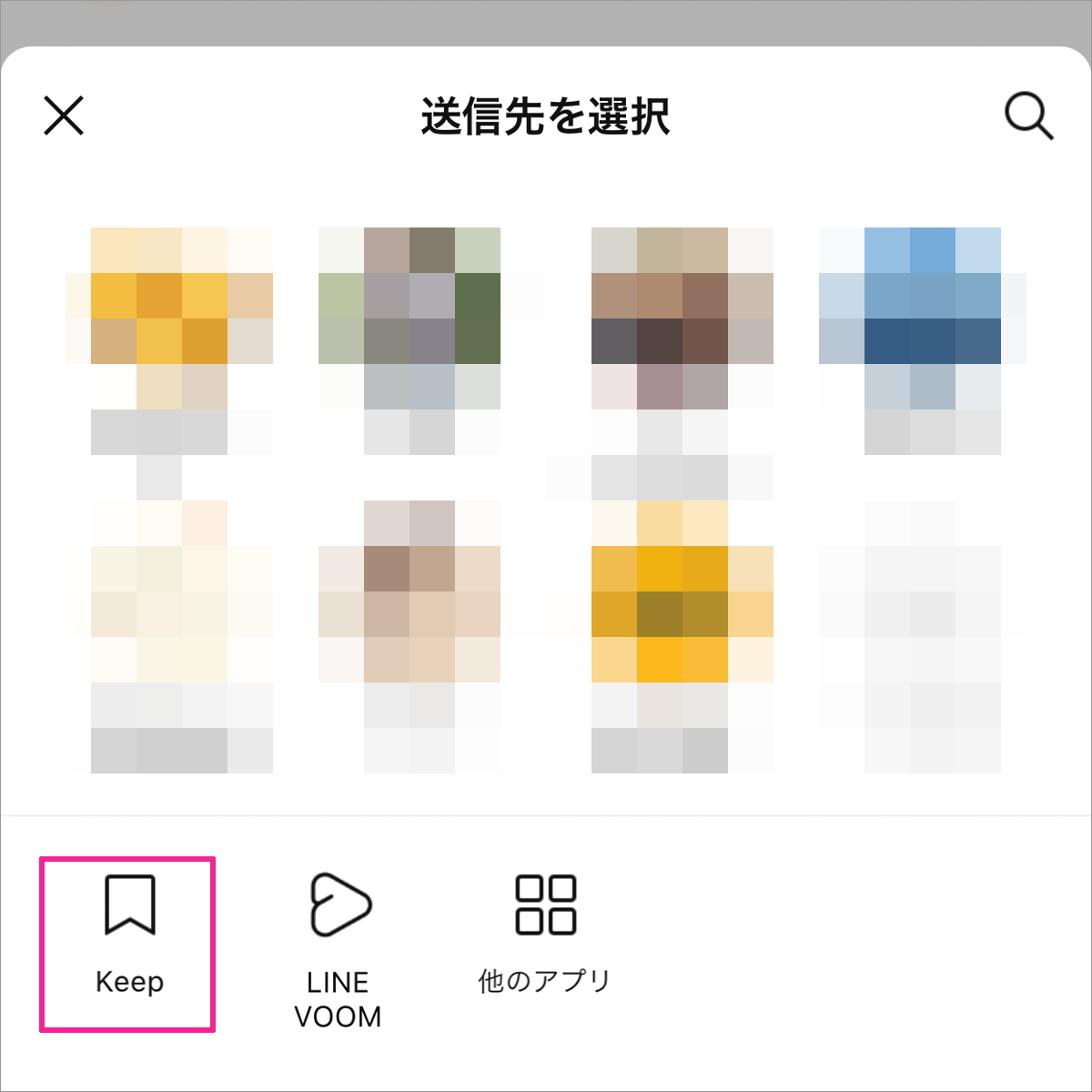 (2)LINEアプリが起動したら、「送信先を選択」画面で「Keep」アイコンをタップ