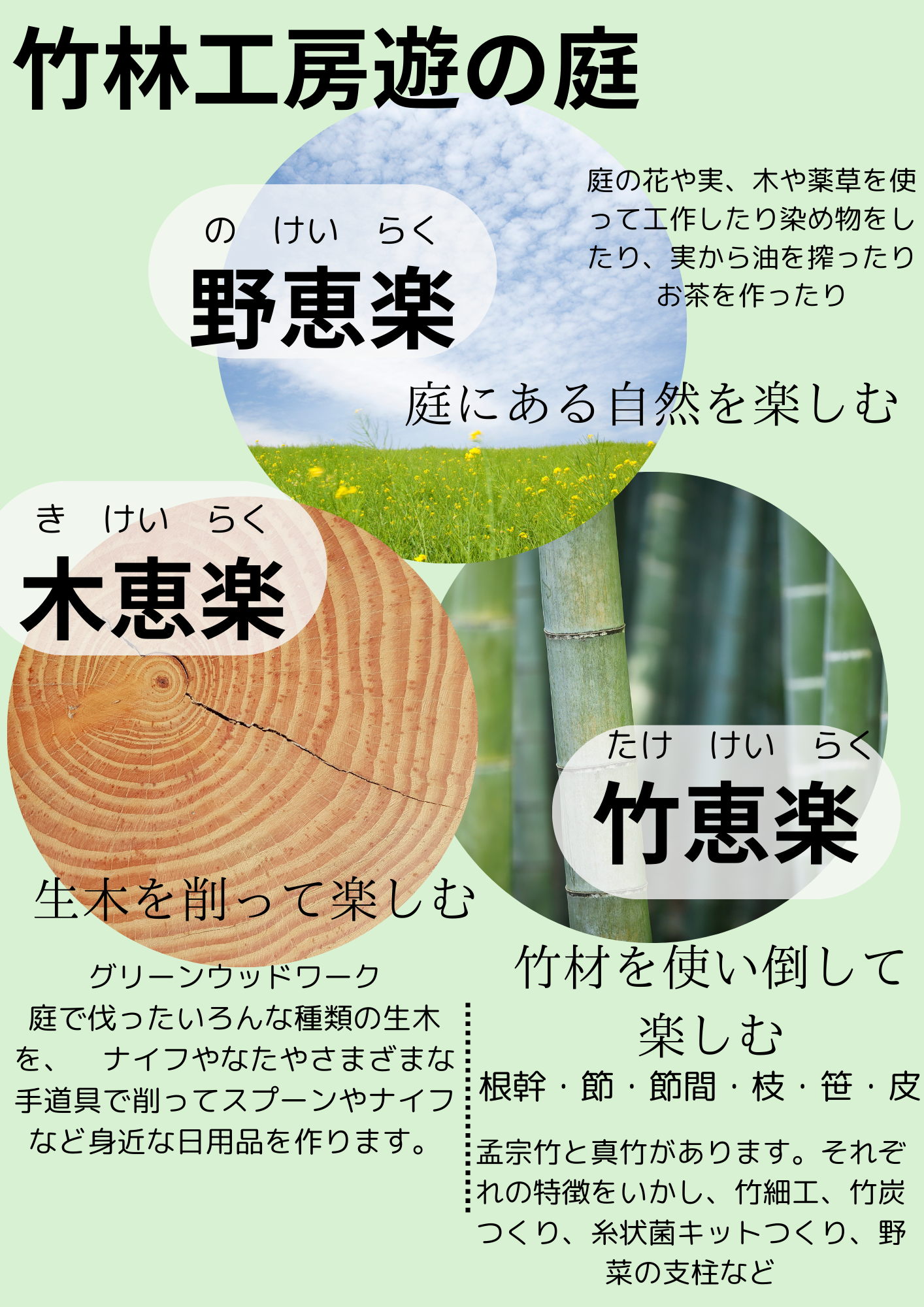<野恵楽-nokeiraku-><木恵楽-kikeiraku-><竹恵楽-takekeiraku->