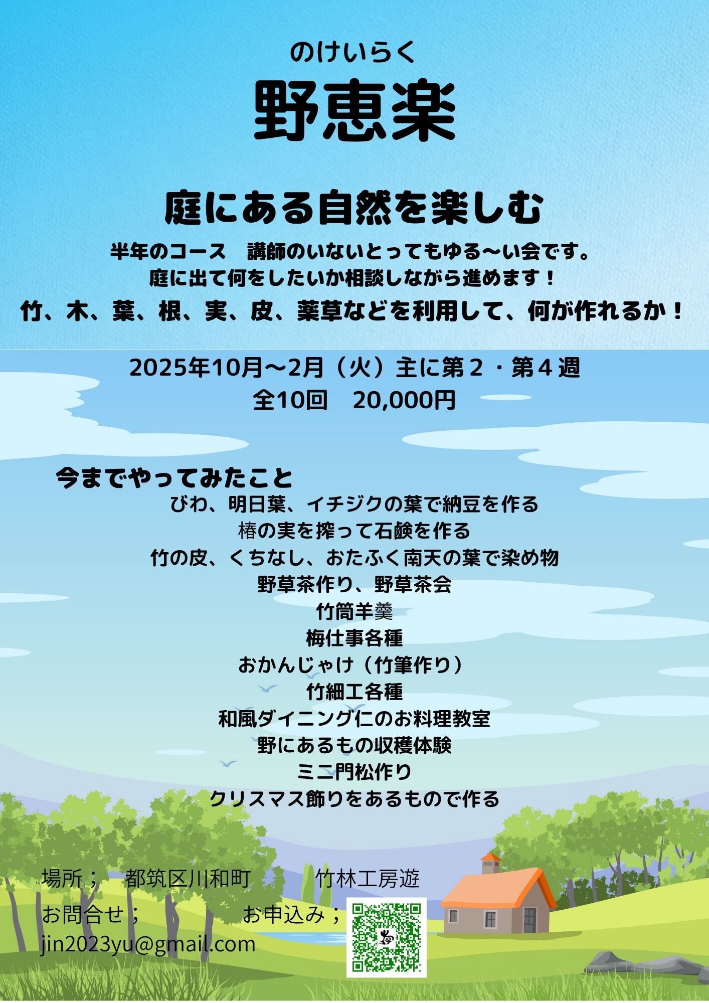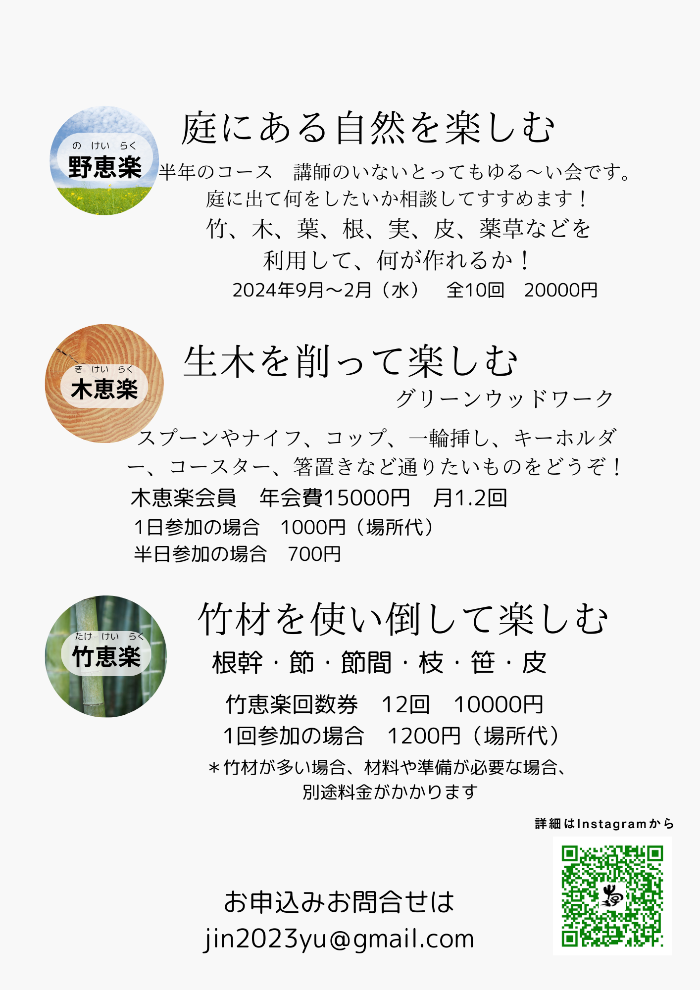 各コースとも、申込み・お問合せは、jin2023yu@gmail.com