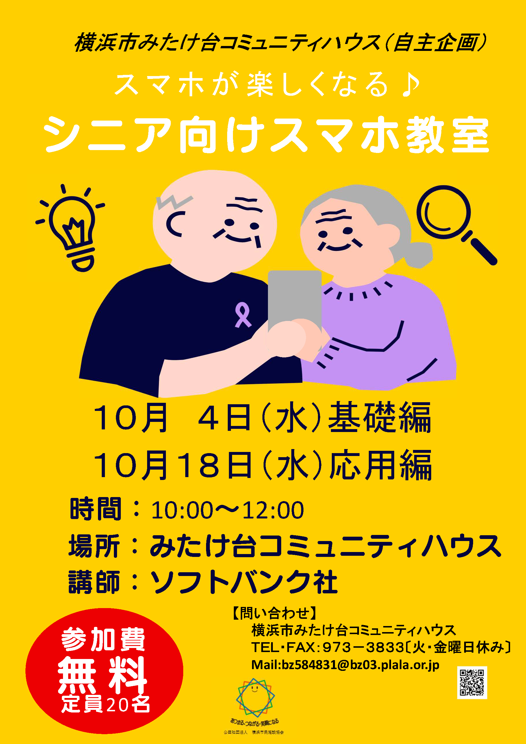 スマホは、講師となりますソフトバンクさんがご用意いただくスマホでの講習会となります。日頃お使いの機種との違いは多少あるかもしれませんが、是非一度プロから基本操作を習ってみませんか!!